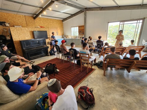 המסע, שהתקיים במהלך יומיים אינטנסיביים, כלל מסלול משמעותי שחיבר בין ערכי מסירות והקרבה לבין חיבור עמוק לארץ ישראל ולמסורת היהודית. יום ראשון – מסירות והקרבה המסע נפתח בצומת דמון בהרכרמל, עם מפגש מרגש עם צביה ריבן, אמו של אלעד ריבן ז"ל שנספה באסון הכרמל כשהתנדב לסייע בכיבוי השריפה. התלמידים נחשפו לסיפורו המרגש של אלעד הנער, שיכול היה להציל את עצמו אך בחר להציל אחרים.המשך היום כלל טיול בנחל אורן בכרמל וטקס מרגש באנדרטת אסון הכרמל, מול נוף מרהיב של הכרמל ומפרץ חיפה. היום הסתיים בתפילת מנחה במערת אליהו הנביא בחיפה, שם התפללו התלמידים גם לשלום חיילי צה"ל, לפני המעבר למושב שדמות מחולה שבצפון הבקעה.