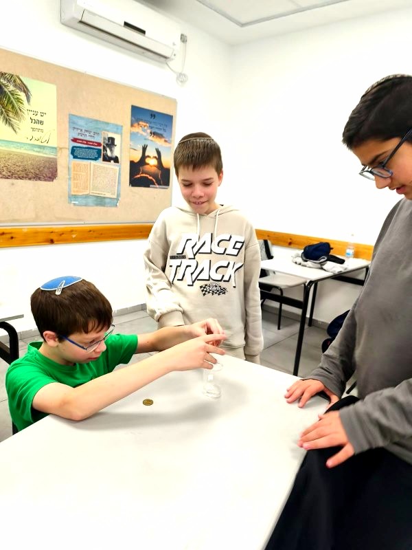 תלמידי כיתה ז'1 השתתפו בניסוי מדעי מרתק, שבו ניסו ליצור טבעת מים גדולה על גבי מטבע – מבלי שהמים יישפכו הצידה. הניסוי דרש דיוק, סבלנות והבנה מדעית, והפך ללמידה חווייתית ומסקרנת במיוחד.
